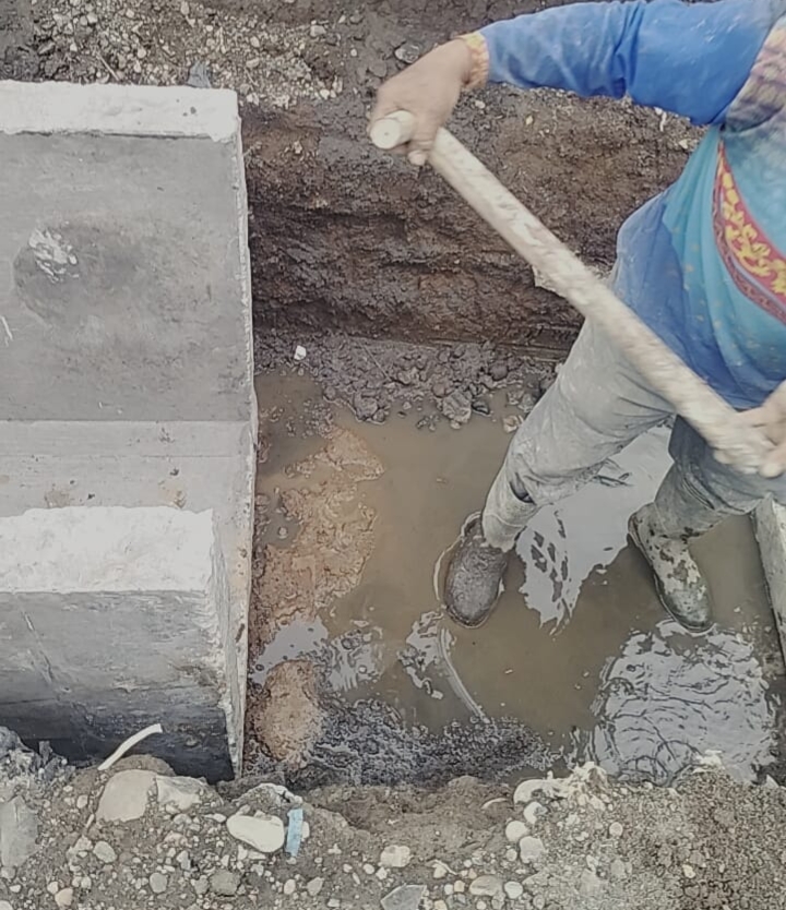 Namun kondisi nyata di lapangan justru jauh berbeda. Pada dokumentasi yang beredar, lantai saluran terlihat tipis, bahkan tanpa lapisan dasar yang memadai.